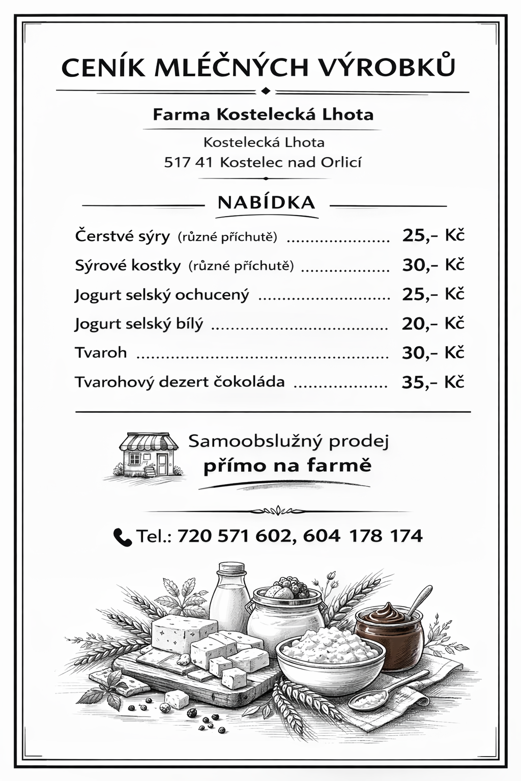 Ceník krmiv a mléčných výrobků naleznete níže.